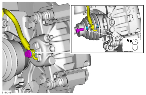 Снимите болт подачи и отсоедините передний тормозной шланг. Выбросьте шайбы.