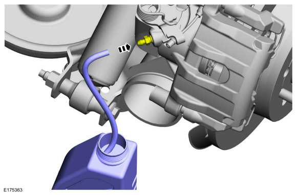 Откройте клапан на бачке для прокачки и подайте на тормозную систему давление 207–345 кПа (30–50 фунтов на кв. дюйм).