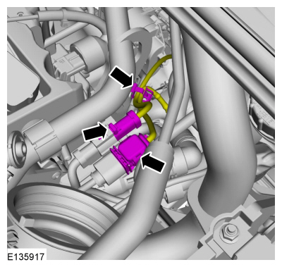 Отсоедините электрические разъемы, снимите фиксаторы жгута проводов и отложите жгут проводов в сторону.