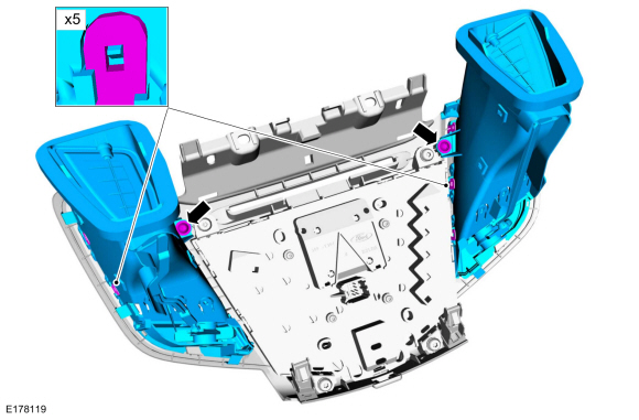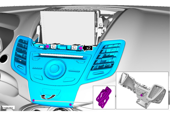 См.: Панель приборов, центральная верхняя панель отделки (501-12 Панель приборов и консоль, Снятие и установка).