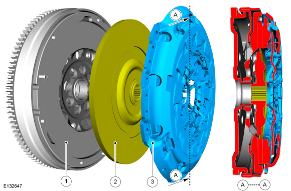 диск сцепления имеет шлицевую ступицу (со встроенным демпфированием кручения пружины), которая крепит диск сцепления к первичному валу. Двигатель выходной вал соединен с входным валом за счет трения, существующего между накладки диска сцепления и узел маховика/нажимного диска сцепления.