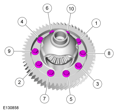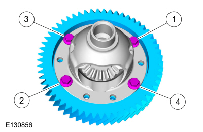 Слегка постучите по болтам, чтобы снять зубчатый венец с дифференциала, и снимите 4 болта.