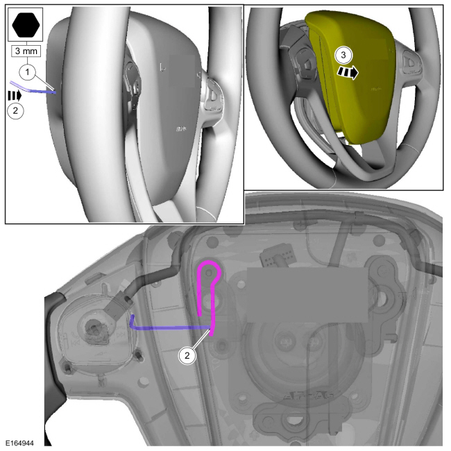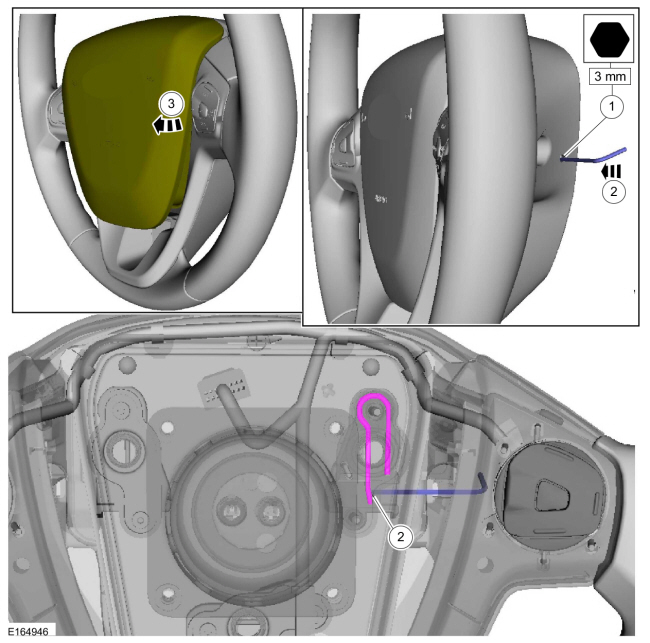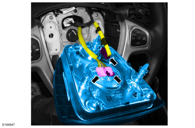 Отсоедините электрические разъемы и снимите подушку безопасности водителя.