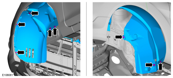 Ford Fiesta: передние панели кузова / брызговик крыльев. Снятие и установка