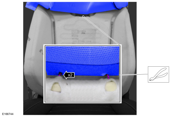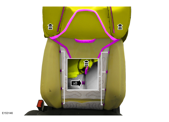 УВЕДОМЛЕНИЕ: Будьте осторожны при отделении чехла спинки сиденья от ленты на липучке, или полоска на липучке может быть порвана из пенопластовой прокладки спинки сиденья