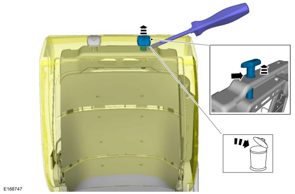 Снимите кольца и снимите обивку спинки переднего сиденья.