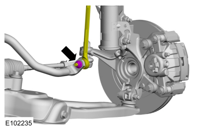 Снимите и выбросьте нижнюю гайку тяги стабилизатора поперечной устойчивости и отложите тягу стабилизатора поперечной устойчивости в сторону.