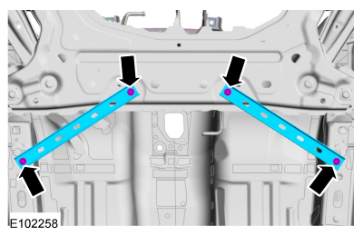 Установите опорные распорки подрамника и установите болты опорной распорки подрамника.