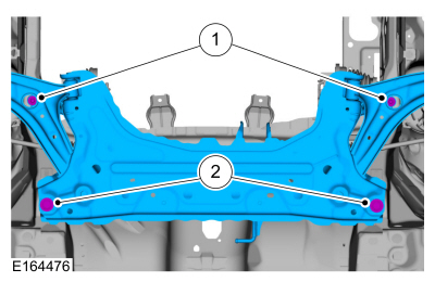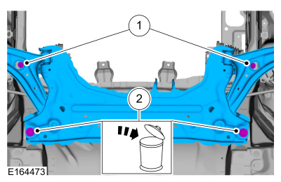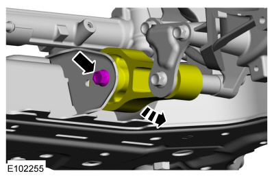 Отверните болты опорной скобы подрамника и снимите опорные скобы подрамника.