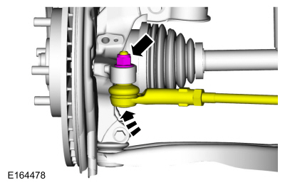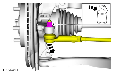 Снимите и выбросьте гайку наконечника поперечной рулевой тяги и отделите наконечник поперечной рулевой тяги от поворотного кулака.