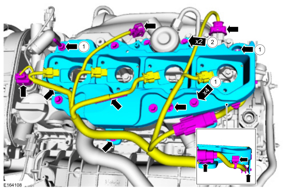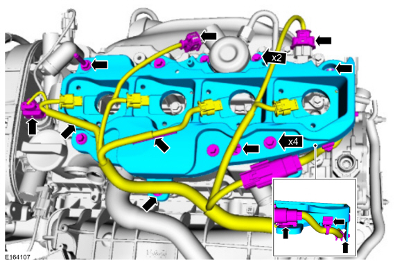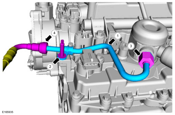 См.: Топливная рампа (303-04B Зарядка и управление топливом — 1,6 л EcoBoost (132 кВт/180 л. с.) — Sigma, Снятие и установка)...