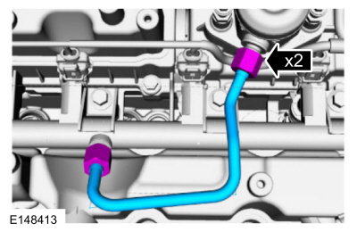 Отсоедините накидные гайки топливопровода высокого давления. Снимите и выбросьте топливную трубку высокого давления.