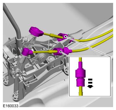 сдвиньте стопорную втулку и снимите тросы переключения передач с