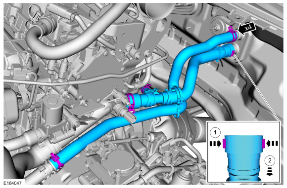 Ford Fiesta: Охлаждение двигателя — 1,6 л EcoBoost (132 кВт/180 л. с.) — Sigma / Шланги отопителя. Снятие и установка
