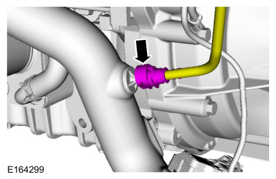 Отсоедините быстроразъемный разъем клапана продувки адсорбера EVAP.