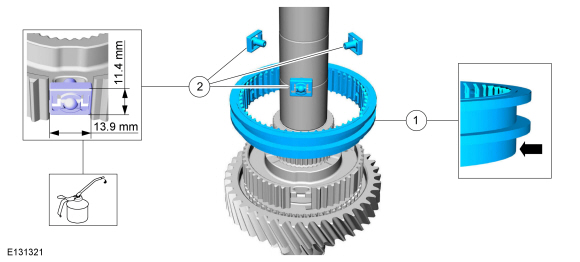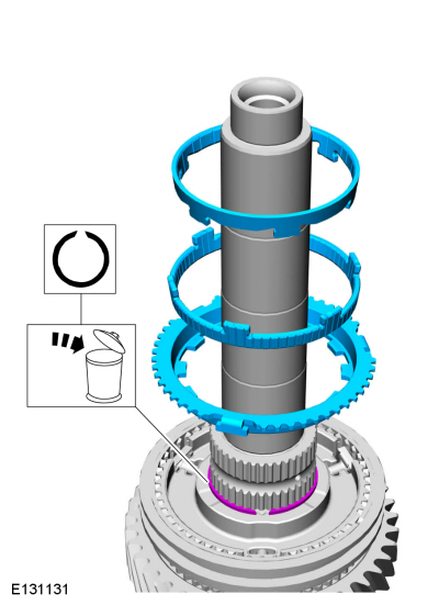 Смажьте синхронизатор 1-й передачи трансмиссионной жидкостью и установите синхронизатор.