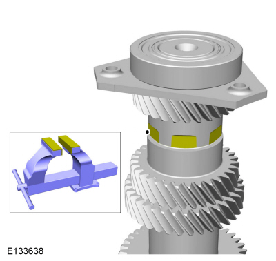 Установите выходной вал в тиски. Зафиксируйте выходной вал на плоских поверхностях.