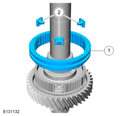 Установите стопорное кольцо ступицы синхронизатора 1-й и 2-й передач.