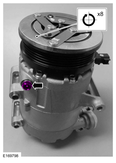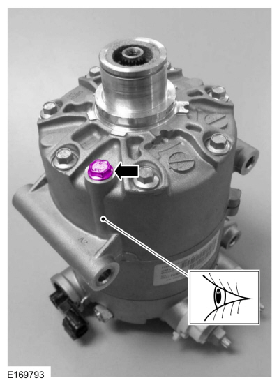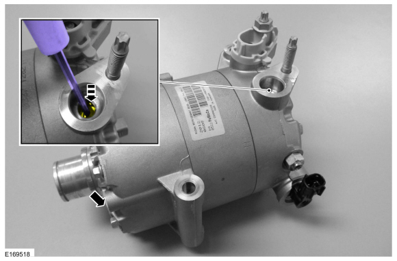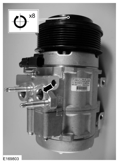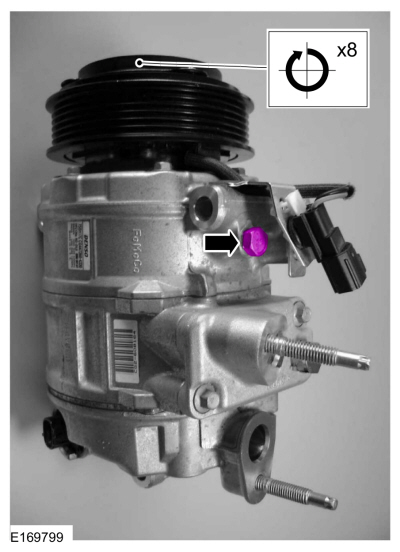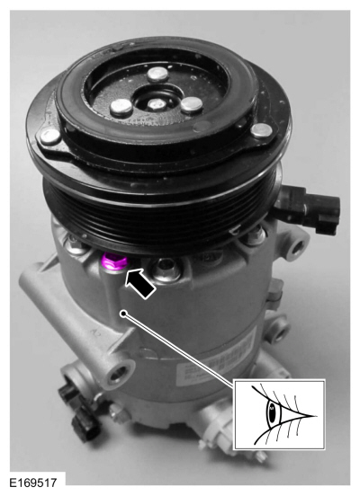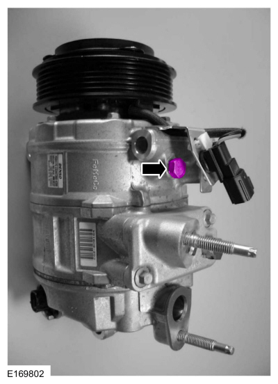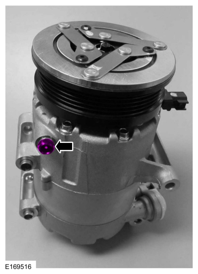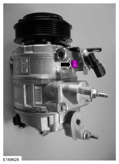 ПРИМЕЧАНИЕ: Новые компрессоры поставляются полностью заряженными Компрессорное масло для хладагентов Motorcraft® PAG (YN-12-D). Старый компрессор заправляется только частично, потому что часть масла находится в другом месте системы кондиционирования.