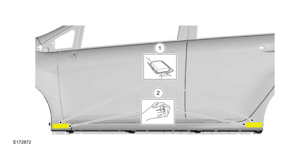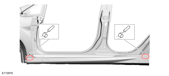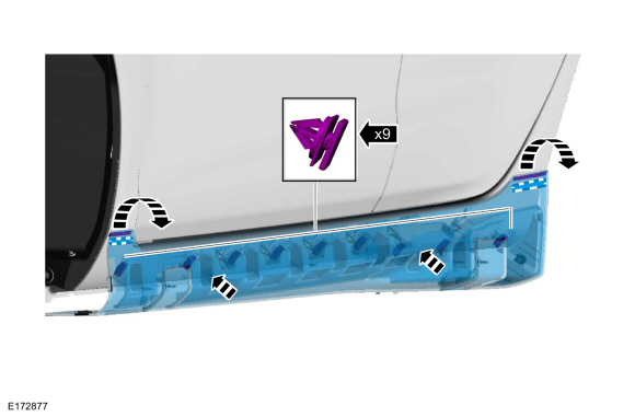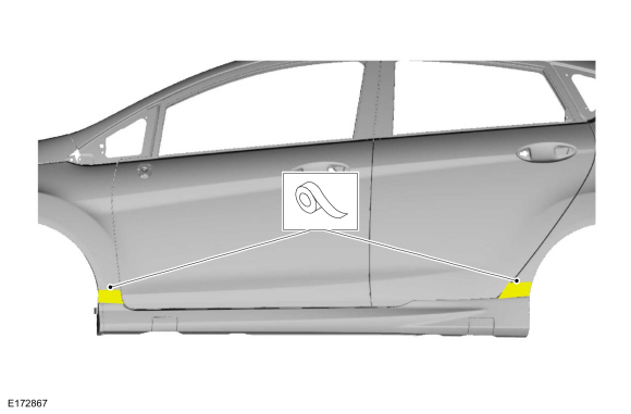 Снимите прокладку(и) клейкой ленты и прижмите концы панели порога, чтобы приклеить панель балансира к металлическому листу автомобиля.