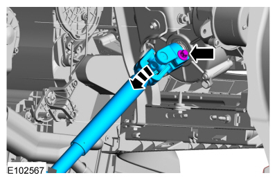 Снимите и выбросьте болт крепления вала рулевой колонки к рулевой колонке.