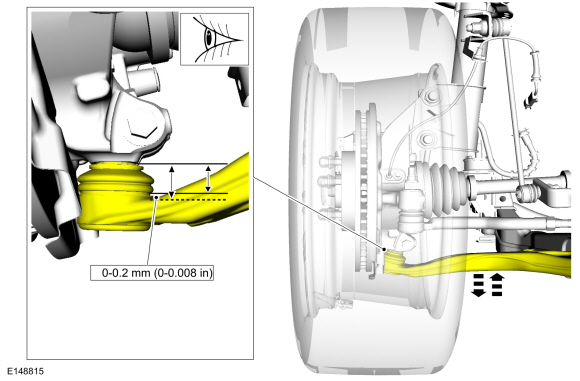 УВЕДОМЛЕНИЕ: Не используйте какие-либо инструменты или оборудование для перемещения колеса и шины в сборе или компоненты подвески при проверке относительной движение. Возможно повреждение подвески. Использование инструментов или оборудования также создаст относительное движение, которого может не быть при использовании руки сила. Относительное перемещение должно измеряться только с помощью силы руки.