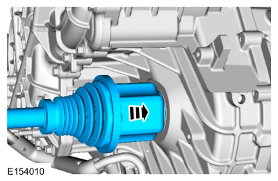 Снимите протектор уплотнения и полностью вставьте левую полуось, пока стопорное кольцо не сядет на место.