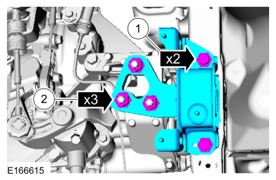 Установите гайки кронштейна изолятора опоры коробки передач.