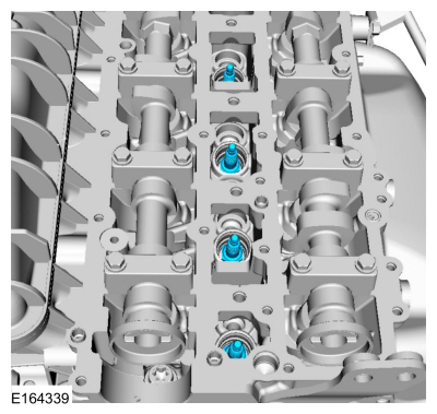 ПРИМЕЧАНИЕ: Нанесите чистое моторное масло на опорные поверхности распределительных валов, крышек подшипников распределительных валов и моста VCT.