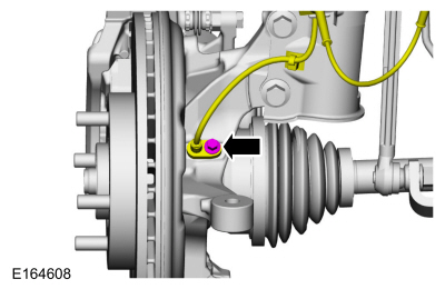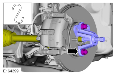 Используя специальный инструмент, выпрессуйте полуось из ступичный подшипник и ступица. Поддерживайте полуось в горизонтальном положении.