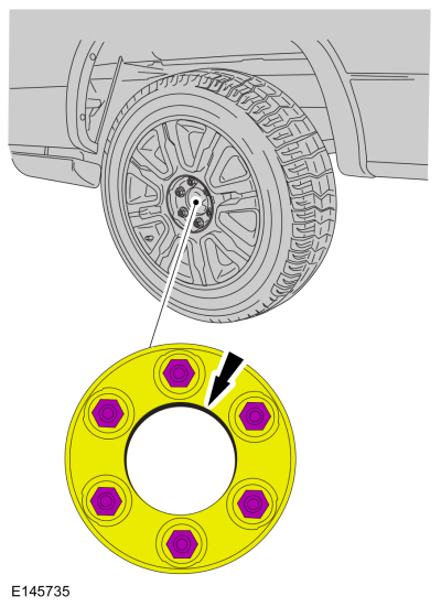 Расположите колесо в сборе с шиной на автомобиле так, что верхняя точка радиального биения или Road Force® находится на отметке 6 часовой стрелке и установите колесные гайки вручную до плотного прилегания.