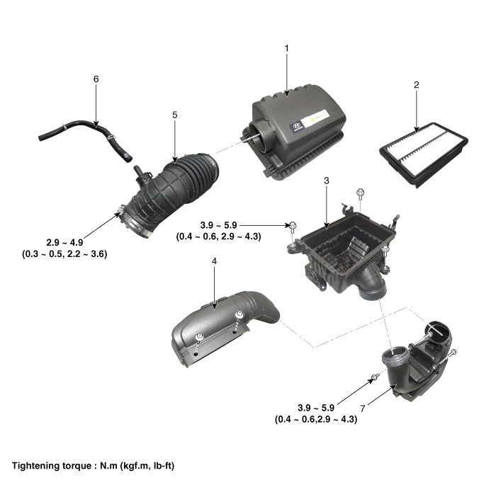 2. Элемент воздухоочистителя 3. Корпус воздухоочистителя 4. Воздуховод |