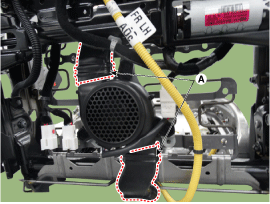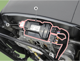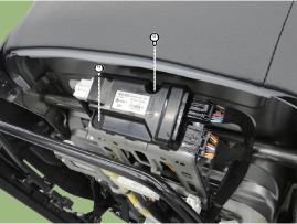 Удаление 1. Отсоедините отрицательную (-) клемму аккумуляторной батареи. 2. Снимите переднее сиденье в сборе. (См. Кузов — «Переднее сиденье в сборе») 3. Снимите спинку сиденья. (См. Кузов - "Переднее сиденье...