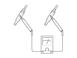Проверьте сопротивление провода радиоантенны между клеммами разъема антенны (А) и массой кузова (В).