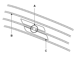 Тщательно заклейте выше и ниже сломанной части провода стеклянной антенны (B) целлофановой лентой (C).