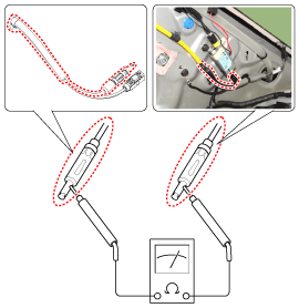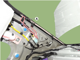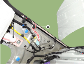 Измерьте напряжение между клеммами разъема питания антенного усилителя (A) и массой кузова (B).