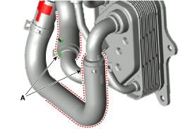 Отсоедините шланг (А) после снятия хомута шланга охладителя жидкости автоматической коробки передач.