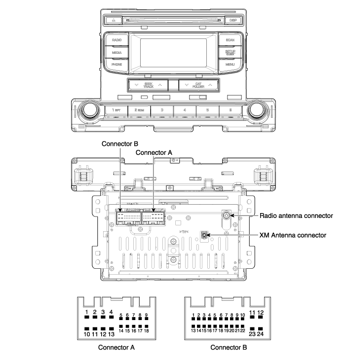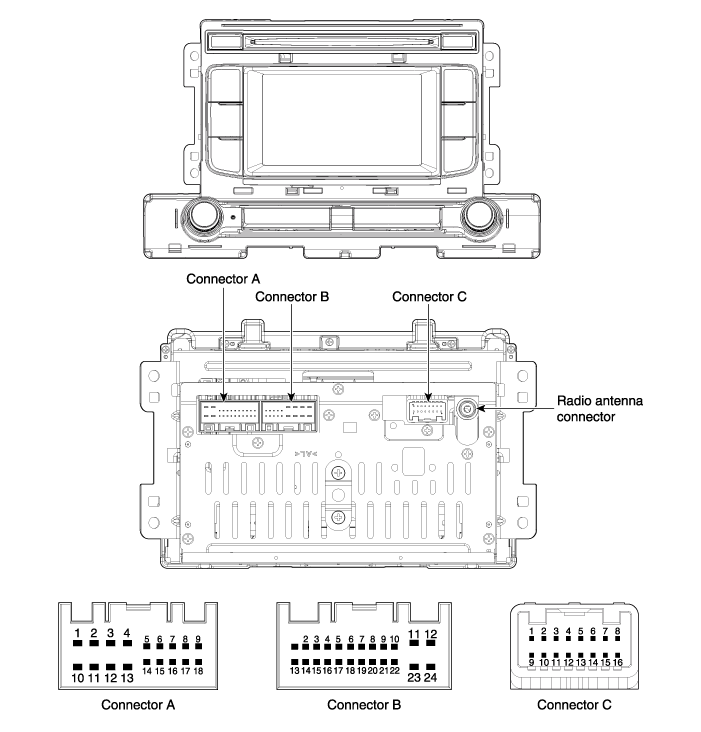 Hyundai Elantra AD (2016-2020) Руководство по ремонту / Электрическая система кузова / Аудио / Компоненты аудиоблока и расположение компонентов