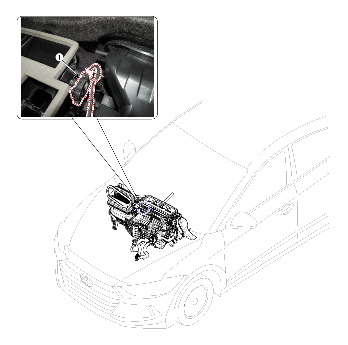 Hyundai Elantra AD (2016-2020) Руководство по ремонту / Отопление, вентиляция, кондиционирование / Обогреватель / Компоненты актуатора автоматического предотвращения запотевания и расположение компонентов