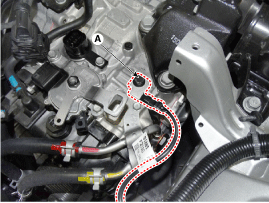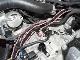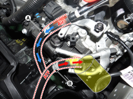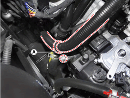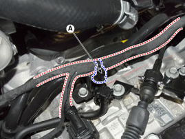 Отсоедините шланг ATF (А) от трубы отопителя.