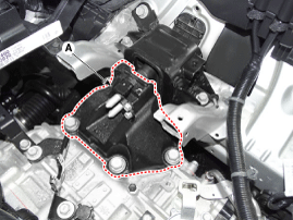 Снимите крышку монтажного кронштейна автоматической коробки передач (А).