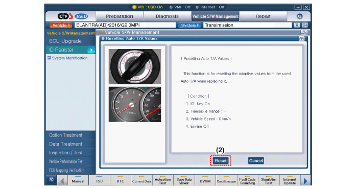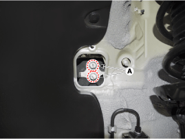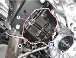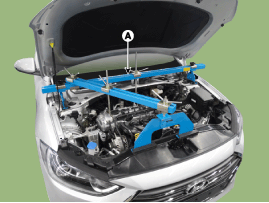 Используя приспособление для поддержки двигателя (A), надежно удерживайте двигатель и коробку передач в сборе.