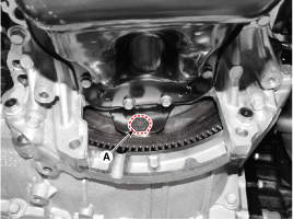 Снимите болты крепления (А) гидротрансформатора, вращая коленчатый вал.