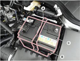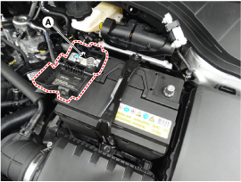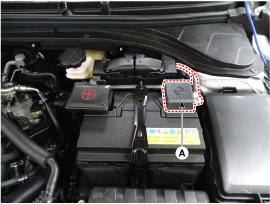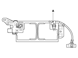 Отсоедините (-) клемму (А) аккумуляторной батареи.