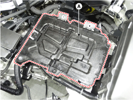 Снимите поддон аккумулятора (А) после ослабления болтов.