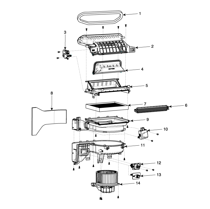 Hyundai Elantra: Компоненты воздуходувки / блока воздуходувки и расположение компонентов