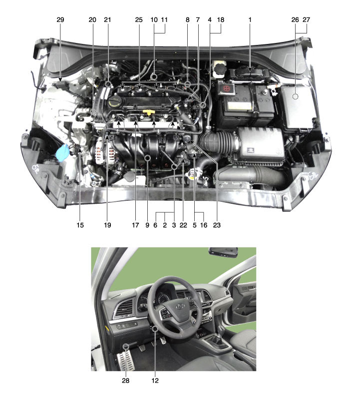 Hyundai Elantra: Система управления двигателем / Расположение компонентов и компонентов