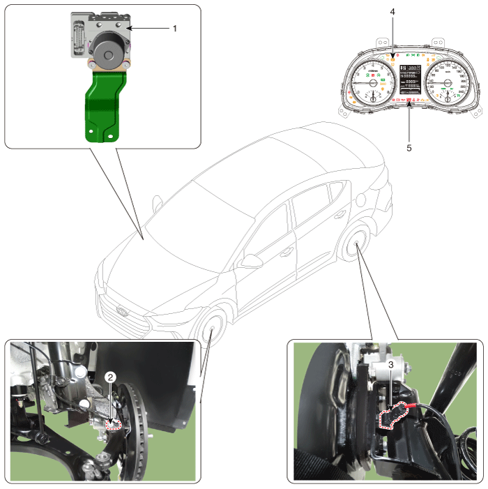 Hyundai Elantra: ABS (антиблокировочная тормозная система) / Компоненты и расположение компонентов