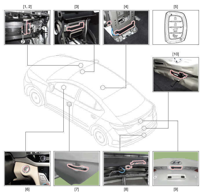 Hyundai Elantra: система запуска двигателя с кнопки / Расположение компонентов и компонентов