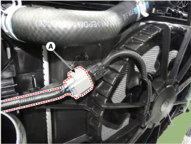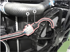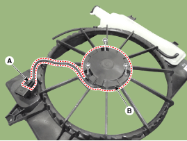 Отсоедините разъем жгута проводов (А) и разъем двигателя вентилятора (В).